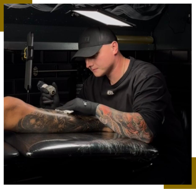 Ive been tattooing for six years, but my journey started long before that with graffiti art, where I learned bold design and precise execution. That foundation has shaped my approach to tattooing today. I specialise in three round liner stipple, a technique that adds texture and detail to every design.